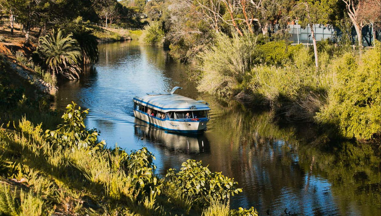 Una agradable travesía en barco por el río Torrens en el corazón de Adelaida.