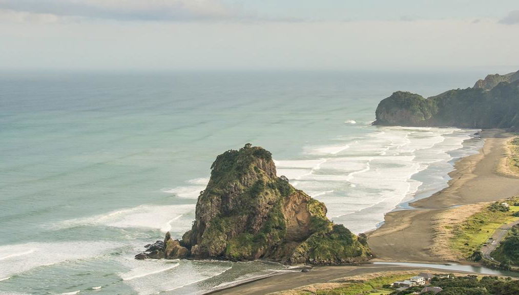 Al acabar, pon rumbo al oeste, a la escarpada costa oeste de Nueva Zelanda. Siente la arena suave y de color negro debajo de tus pies mientras la brisa oceánica acaricia tu cara.