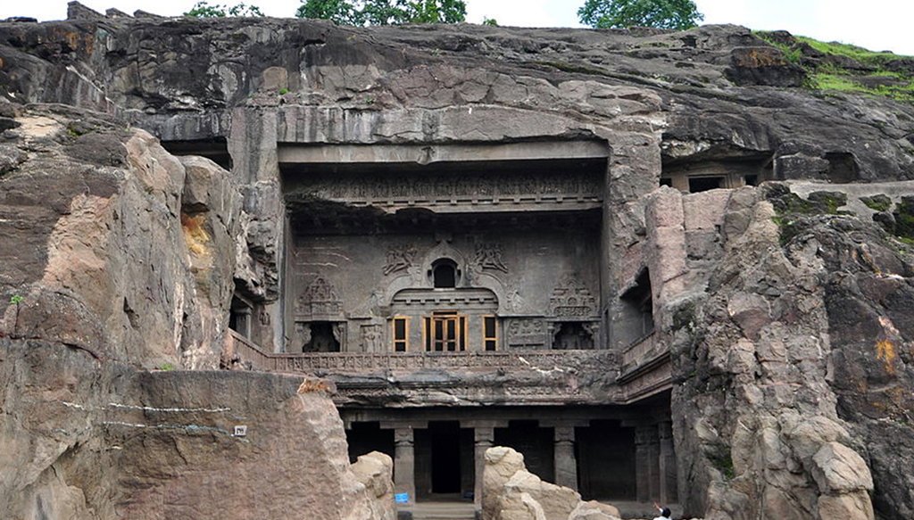 El complejo de Ellora fue declarado Patrimonio de la Humanidad por la UNESCO en 1983. Las 12 cuevas budistas (en el sur) datan aproximadamente del 200 a. C. al 600 d. C., los 17 templos hindúes (en el centro) datan aproximadamente del 500 al 900 d. C., y los 5 templos jainistas (en el norte) datan aproximadamente del 800 al 1000. Las cuevas hindúes son las de diseño más espectacular, y las cuevas budistas contienen la ornamentación más simple. Ellora sirvió como un conjunto de monasterios (viharas) y templos (caityas); algunas de las cuevas incluyen celdas para dormir que fueron talladas para monjes itinerantes.