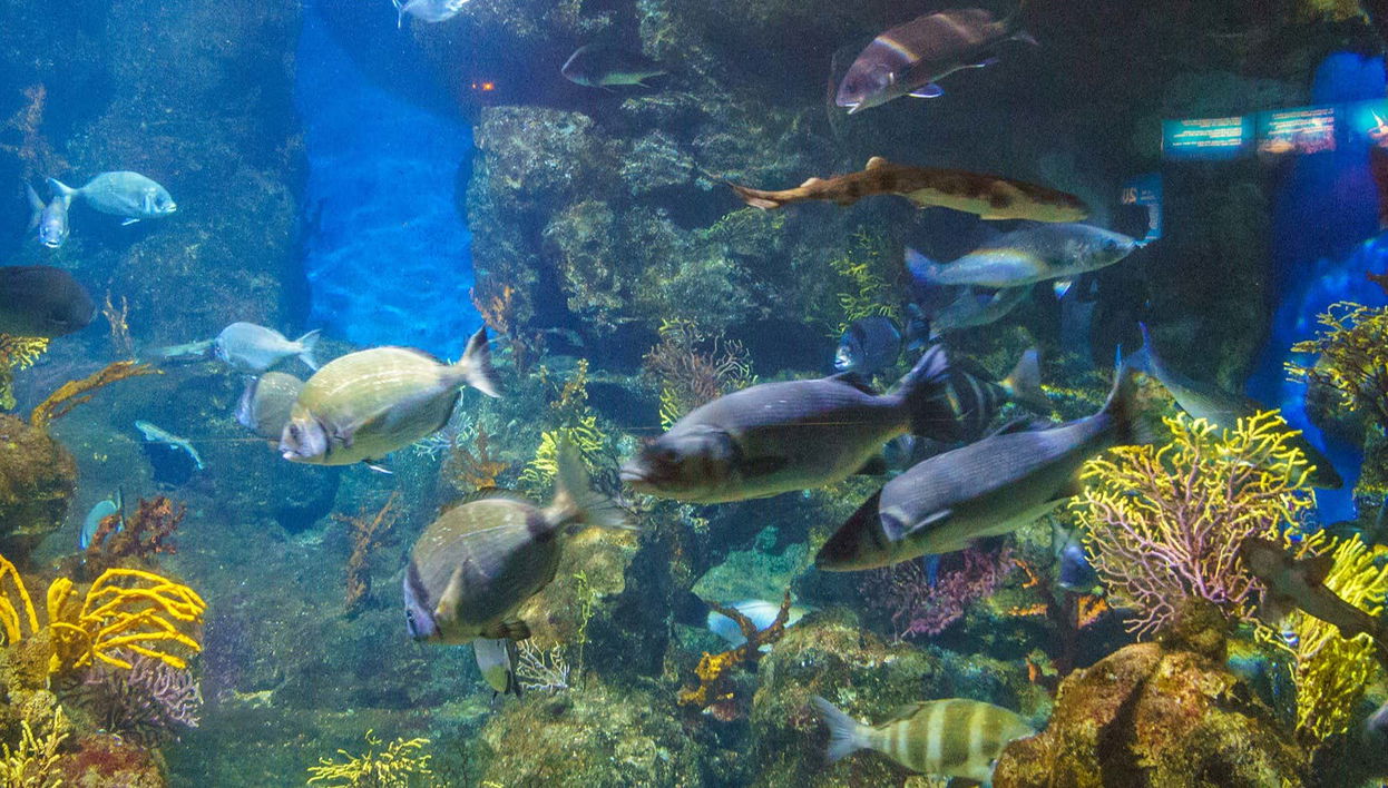 Único en Europa, este acuario contiene casi 4 millones de litros de agua y alberga especies como doradas, morenas, peces luna y dos tipos de tiburones: el toro y el jaquetón de Milberto.