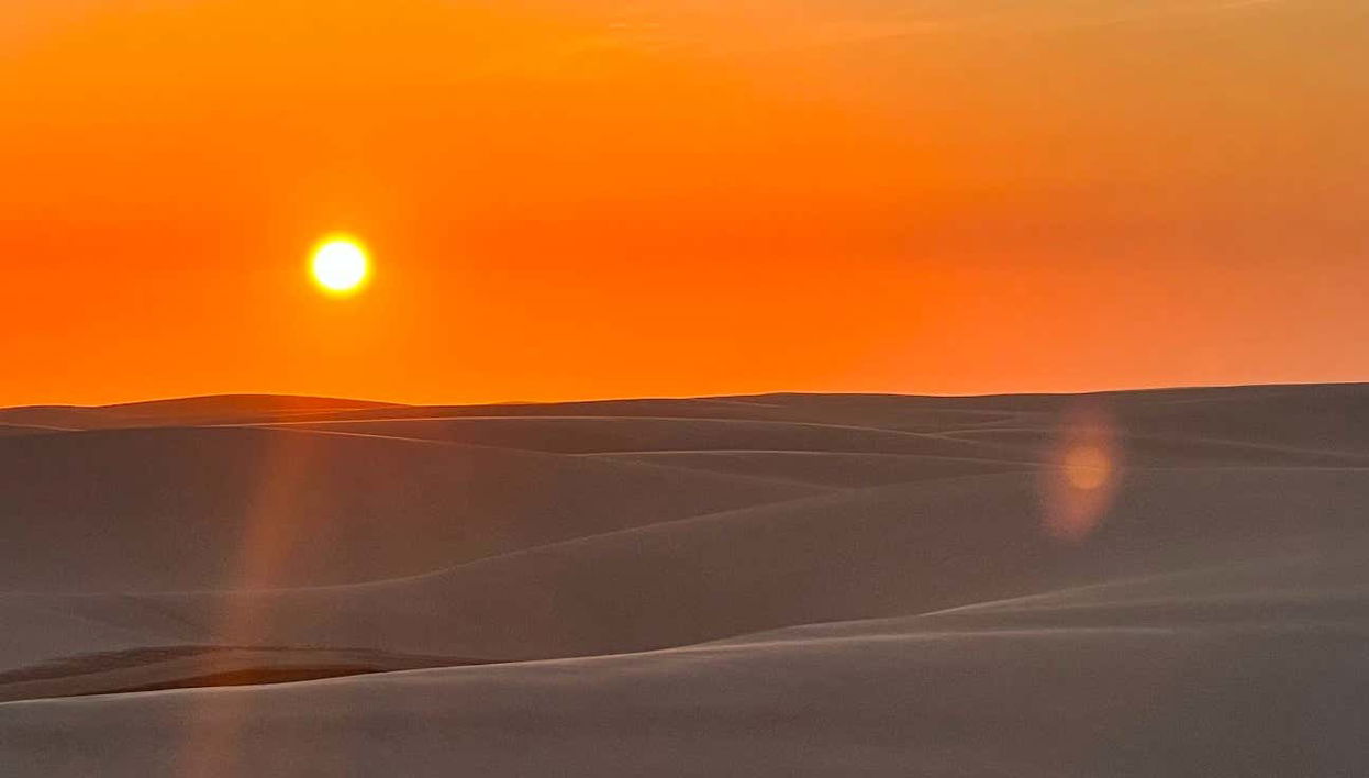 Cuando el sol comience a caer, nos detendremos para contemplar el atardecer en lo alto de una de las dunas. Allí os dejaremos tiempo para sacar fotos y disfrutar de los tonos anaranjados que tiñen el cielo. Finalmente, emprenderemos el camino de regreso a Atins para volver a vuestro hotel.