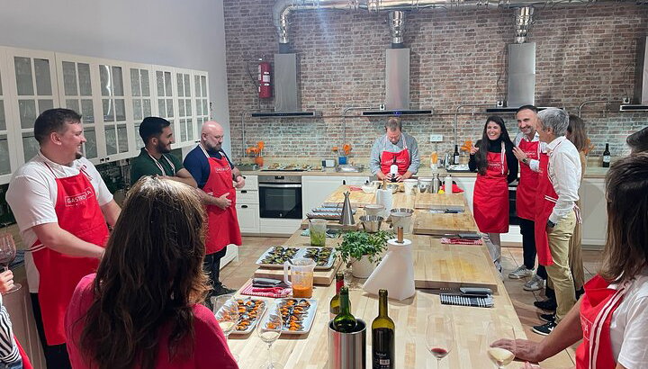 Aprende sobre los ingredientes vascos (solo usamos productos de temporada directamente del mercado), cocina con viajeros apasionados como tú, diviértete y disfruta de tu comida con un delicioso vino local en nuestros comedores privados.