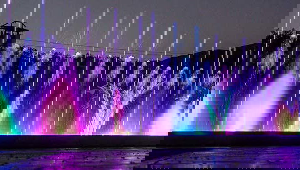 Pasear por el Parque de la Familia al caer el sol es una experiencia única. Recorreremos el lugar mientras disfrutamos de sus cinco fuentes de aguas danzantes iluminadas con luces LED multicolor.