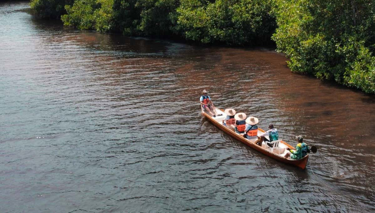 Nos adentraremos en los canales que han formado los manglares para descubrir la flora y fauna endémica de la región. Durante el paseo, observaremos numerosas especies de animales, como cangrejos, ostras, mapaches y águilas. Desembarcaremos en una casa flotante para disfrutar de una comida tradicional, donde el plato principal serán las ostras. Luego, emprenderemos la navegación de vuelta al punto de partida.