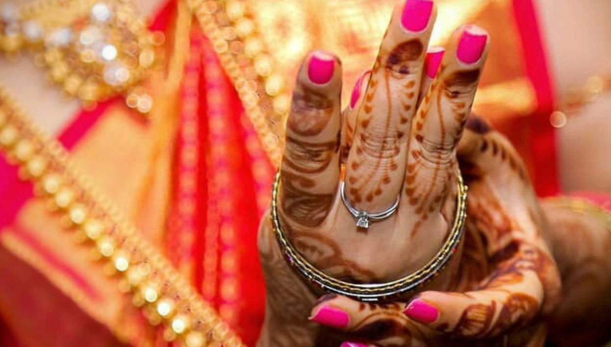 - Pintura de hena en las manos de la novia.