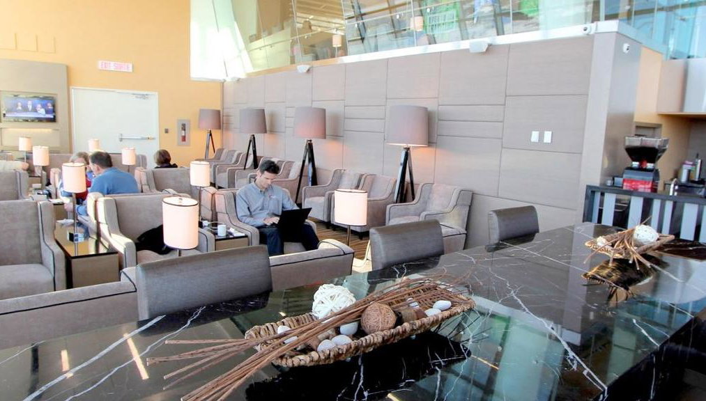 Un Precioso salón de dos niveles con ventanales del piso al techo con vista a la propiedad del aeropuerto, este salón se encuentra después de la Puerta 88, cerca de la terminal de salidas de EE. UU. Con una extensión de 232 metros cuadrados, el salón tiene capacidad para 75 invitados, tanto en la entrada superior como en el nivel inferior al que se accede por escaleras o ascensor.