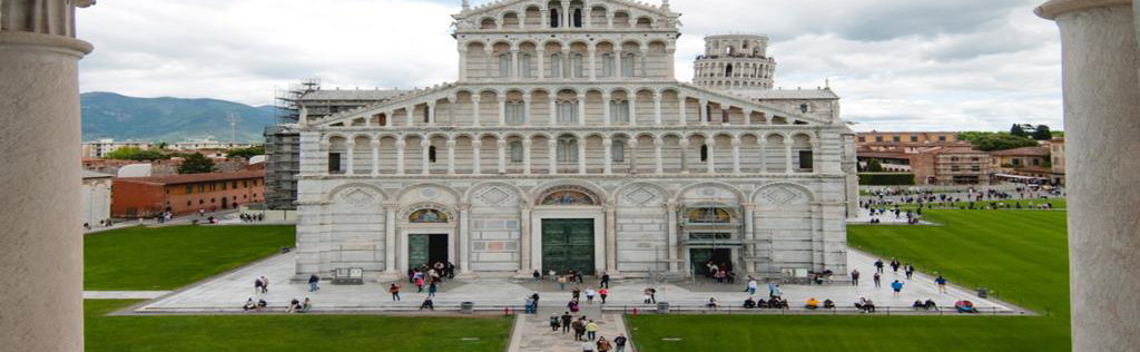 La caminata comienza con un paseo a lo largo de las murallas medievales hasta la antigua entrada: Porta Santa María; desde la se puede admirar cómo la arquitectura de mármol blanco se destaca en las verdes praderas de Piazza dei Miracoli.