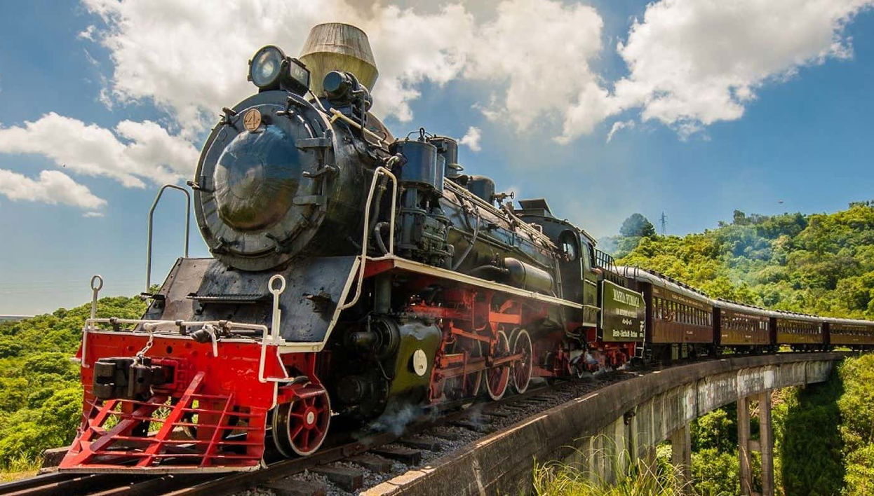 Descubrid los paisajes más pintorescos de la Sierra Gaucha con un paseo en el tren Maria Fumaça hasta la vinícola Aurora.