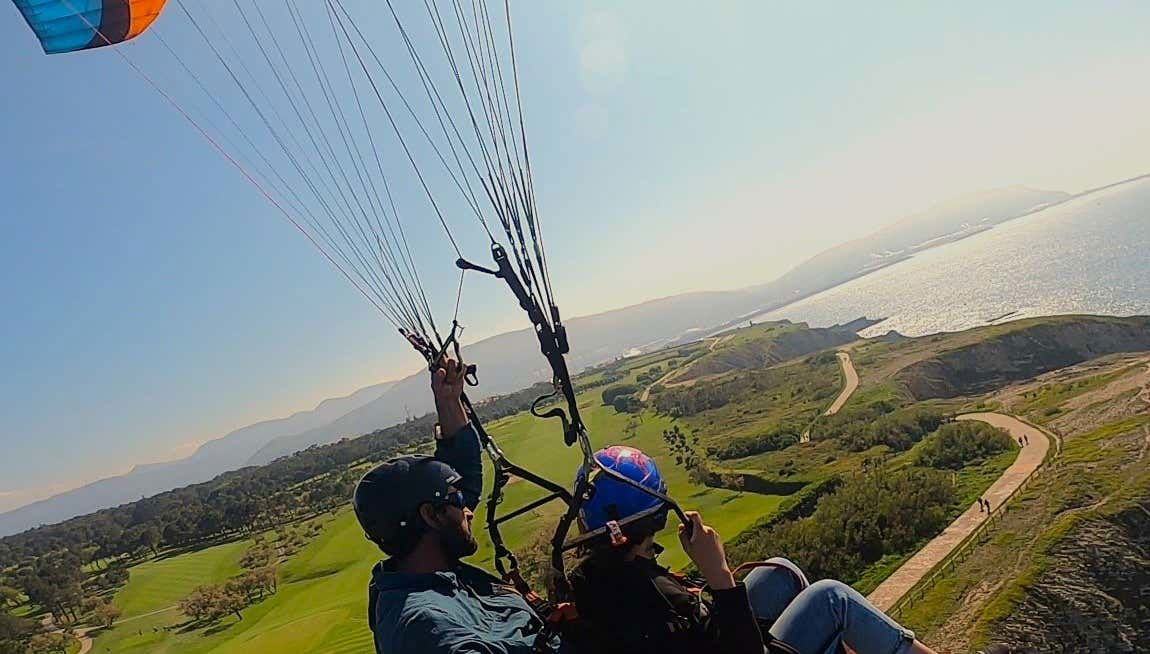 Después de las explicaciones, os ayudaremos a poneros el equipo. Durante los 20 minutos de vuelo, disfrutaréis de las vistas de los acantilados de la Costa Vasca, playas y las aguas del mar Cantábrico.