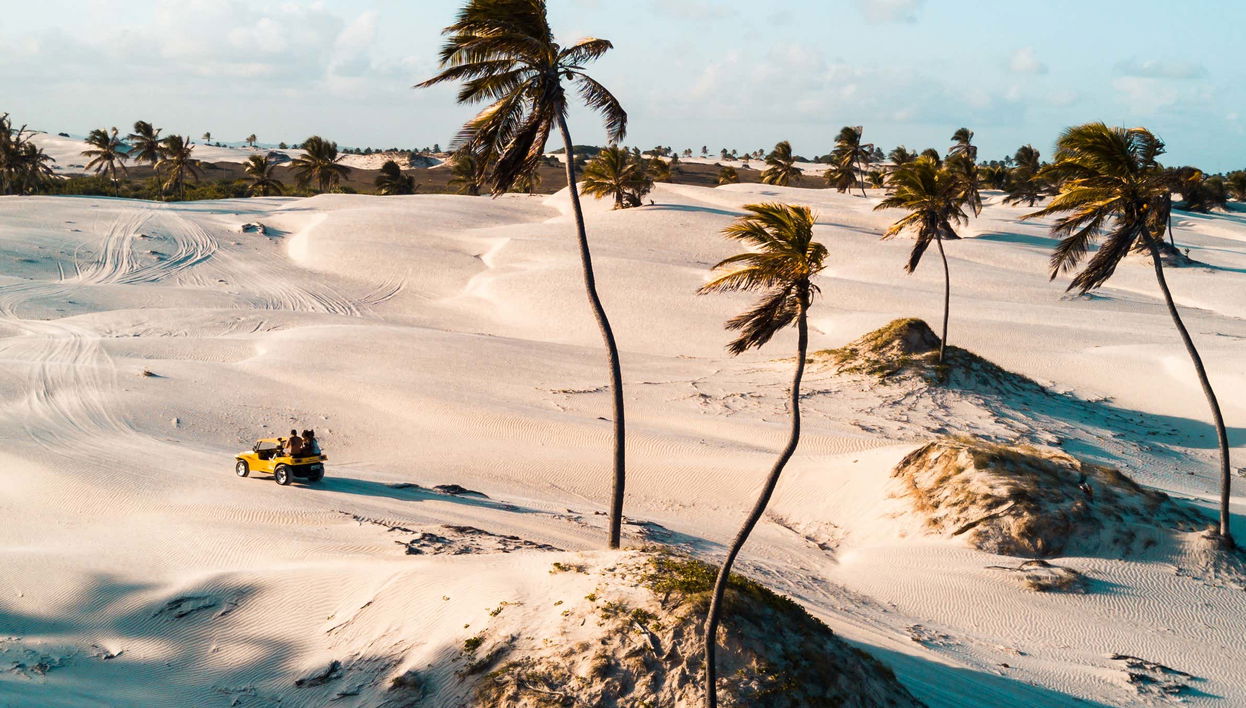 Continuaremos hacia las Dunas de Camocim, donde se puede disfrutar de tirolinas y toboganes. Luego, atravesaremos las dunas del Parque Nacional de Jericoacoara hasta la localidad de Tatajuba, con dos horas de tiempo libre para comer y nadar en su laguna.