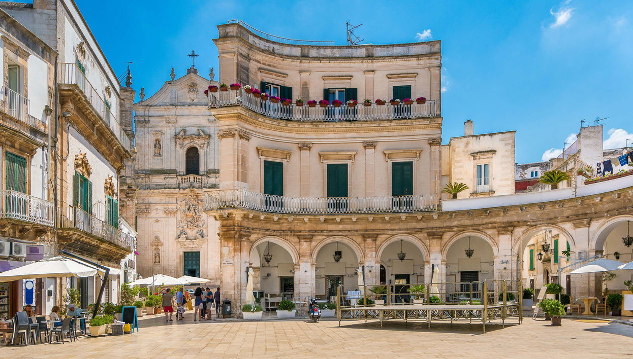 En la piazza del Plebiscito veremos también la Universidad de Martina Franca y la torre del reloj. Seguiremos paseando por los estrechos callejones admirando los palacetes barrocos y rococós, ideales para fotografías.