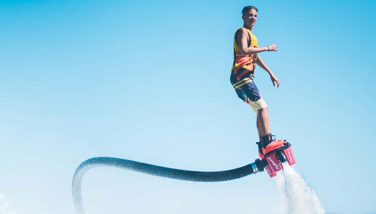 Impulsados por un cañón de agua, sentiréis cómo vuestros pies se alejan de la superficie para “volar” sobre el mar. No importa si os caéis, levantarse y volver a intentarlo es más sencillo de lo que parece. Os sentiréis como auténticos superhéroes mientras saltáis, giráis y planeáis sobre el mar. Será una experiencia inolvidable.