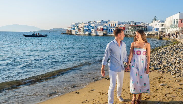 La isla de Mykonos tiene muchas ubicaciones fotográficas listas para ser capturadas en cualquier momento del día. No tiene que preocuparse por eso, porque somos expertos en fotografía y organizamos sesiones de fotos privadas