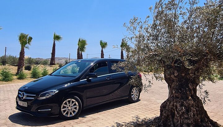 Evita el estrés de los taxis o autobuses llenos de gente y disfruta de un transporte sin problemas a través de Mykonos con un traslado privado de Mercedes.