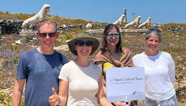- Tu Guía Antonis llevará un cartel con el logo de Naxos Cultural Tours y te entregará tus billetes de barco. Juntos embarcarán en el barco local a Delos.