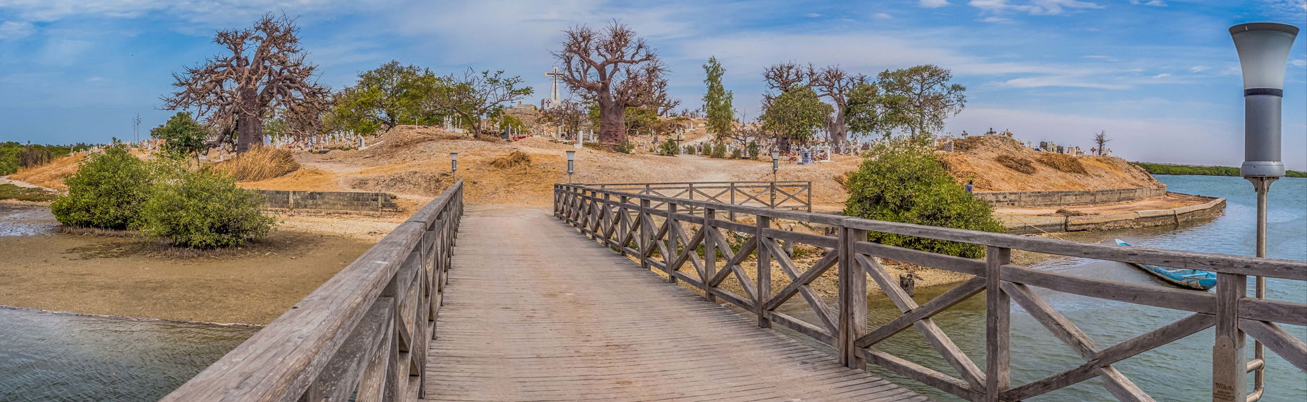 Continuaremos nuestra excursión en dirección al vecino pueblo insular de Fadiouth. Para acceder a esta isla cruzaremos un bello puente de madera que nos conducirá hasta el famoso cementerio de conchas de Fadiouth. Las corazas de los moluscos constituyen el material principal de construcción de las tumbas de este camposanto, compartido entre musulmanes y cristianos. Con el paso del tiempo, este lugar se ha convertido en todo un símbolo de paz y convivencia entre las diferentes religiones y culturas mayoritarias de Senegal.