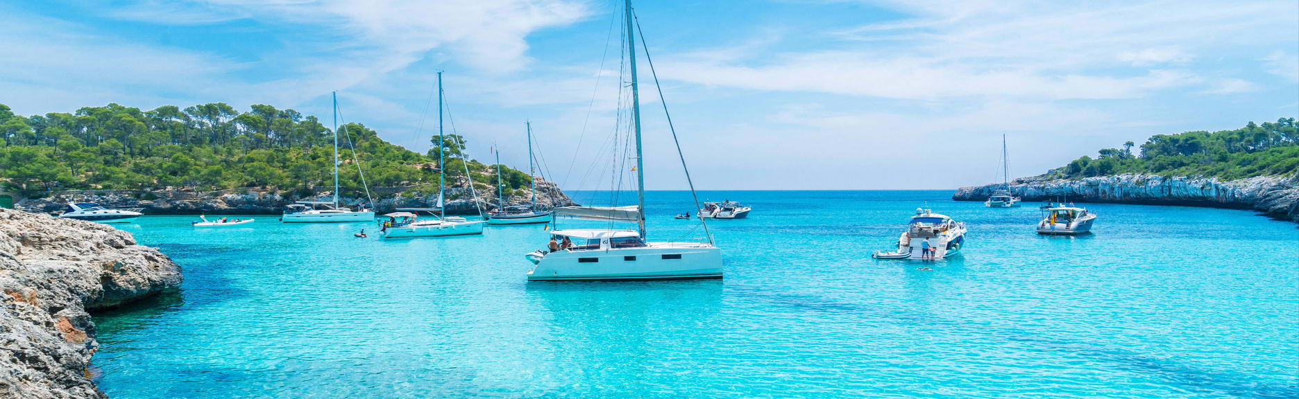 Surcaremos las aguas de la bahía de Palma a bordo de un catamarán. Podréis bañaros en Cala Vella y disfrutar de una barbacoa.