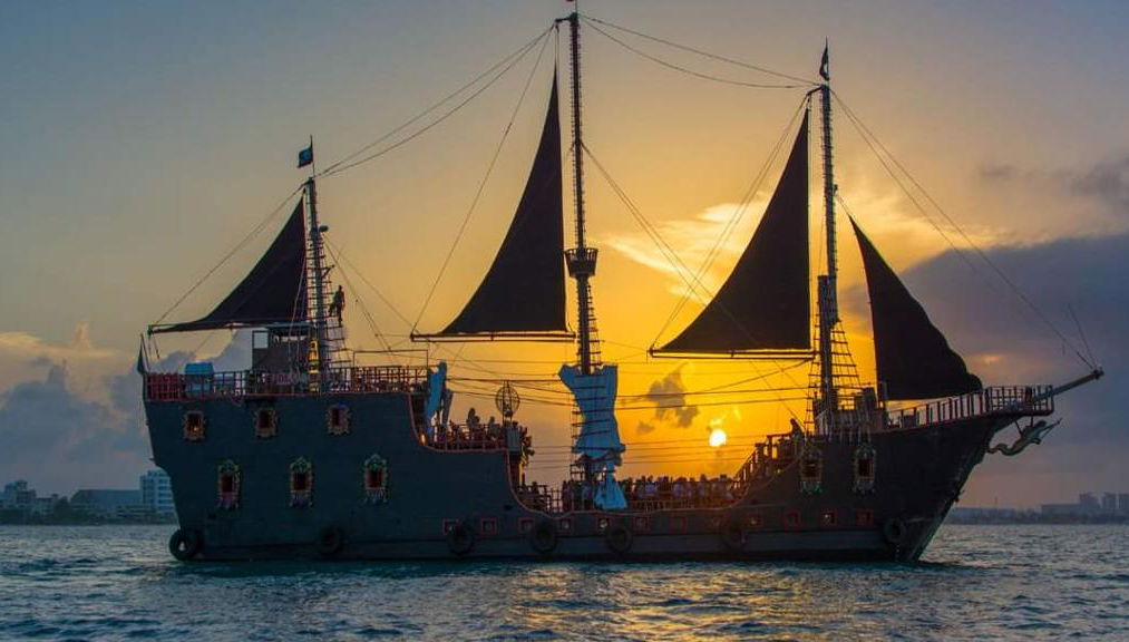 Barco pirata Jolly Roger con cena y espectáculo en la bahía de Cancun