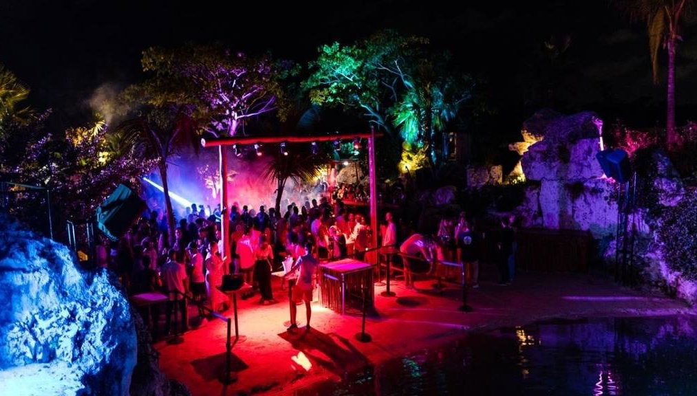 Durante el espectáculo nocturno, vibrarás con la mejor música mientras te diviertes al borde del cenote.