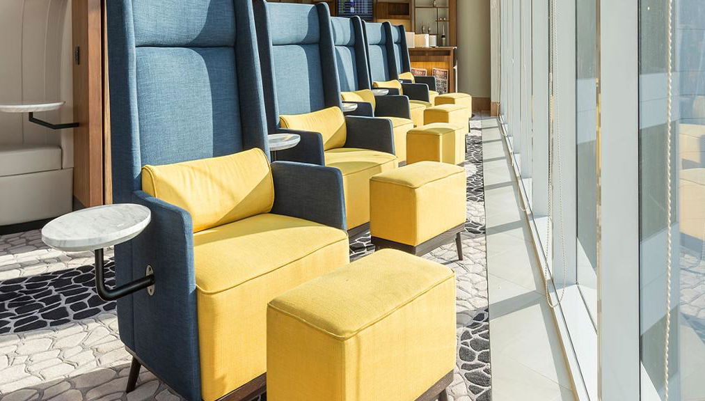 This 14,000 square foot lounge is located in the South Pier, a new extension of the airport. Travellers can enjoy an array services and facilities, including comfortable seating, a wide selection of food and beverage, shower facilities, complimentary Wi-Fi, workstations, TV channels and international newspapers and magazines. VIP rooms are also available for travellers who need a little more privacy.