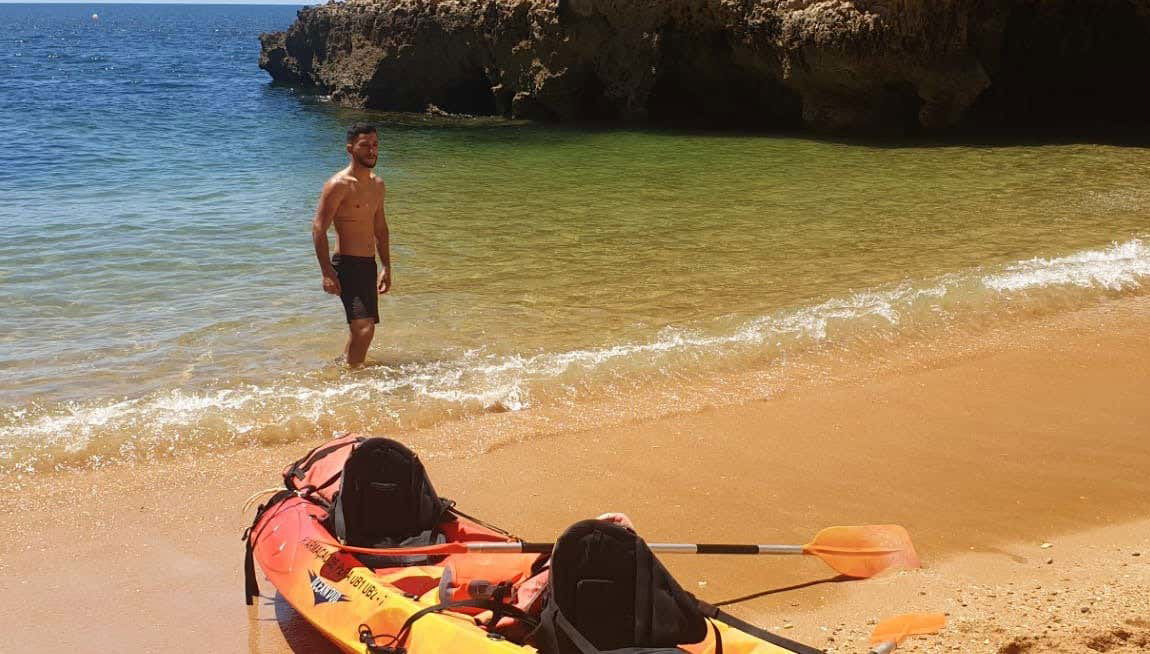 Disfruta de un día navegando en kayak por la costa de Armação de Pêra, en el Algarve portugués, una actividad para contactar con la naturaleza. Itinerario.
