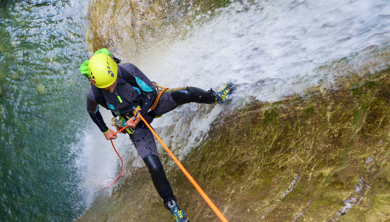 Durante el recorrido, atravesaremos diferentes cañones y cascadas rodeados de un paisaje envidiable. Incluso descenderemos por un resbaladizo tobogán. ¡Uno de los momentos más divertidos del día! Finalmente, realizaremos un rápel volado con el que sentiréis cómo se dispara vuestra adrenalina.