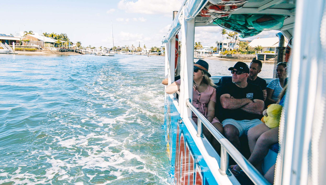 A la hora que elijáis, nos reuniremos en el Parkyn Parade, Mooloolaba QLD 4557, donde os daremos la bienvenida a bordo del autobús anfibio. Comenzaremos el recorrido por Sunshine Coast por carretera, admirando mansiones y lugares emblemáticos como el mercado de pescado, la reserva de Point Cartwright y los canales de Minyama.