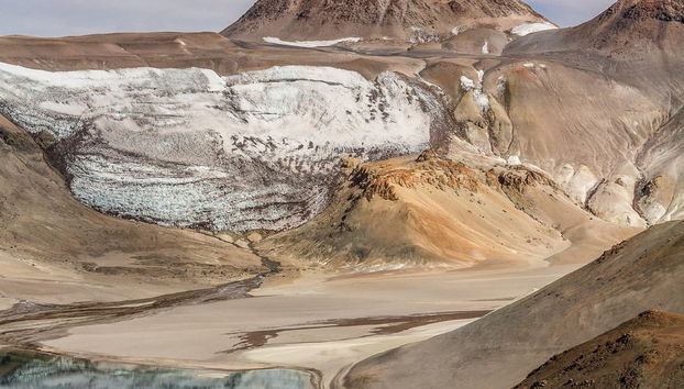 La ruta continuará en la Pampa del Veladero, un valle desértico donde se presentan montículos de hielo por un fenómeno natural específico. Haremos una pausa para almorzar con la comida que traigáis y luego bordearemos el río Veladero hasta el Monte Pissis, que alcanza los 6882 metros sobre el nivel del mar.