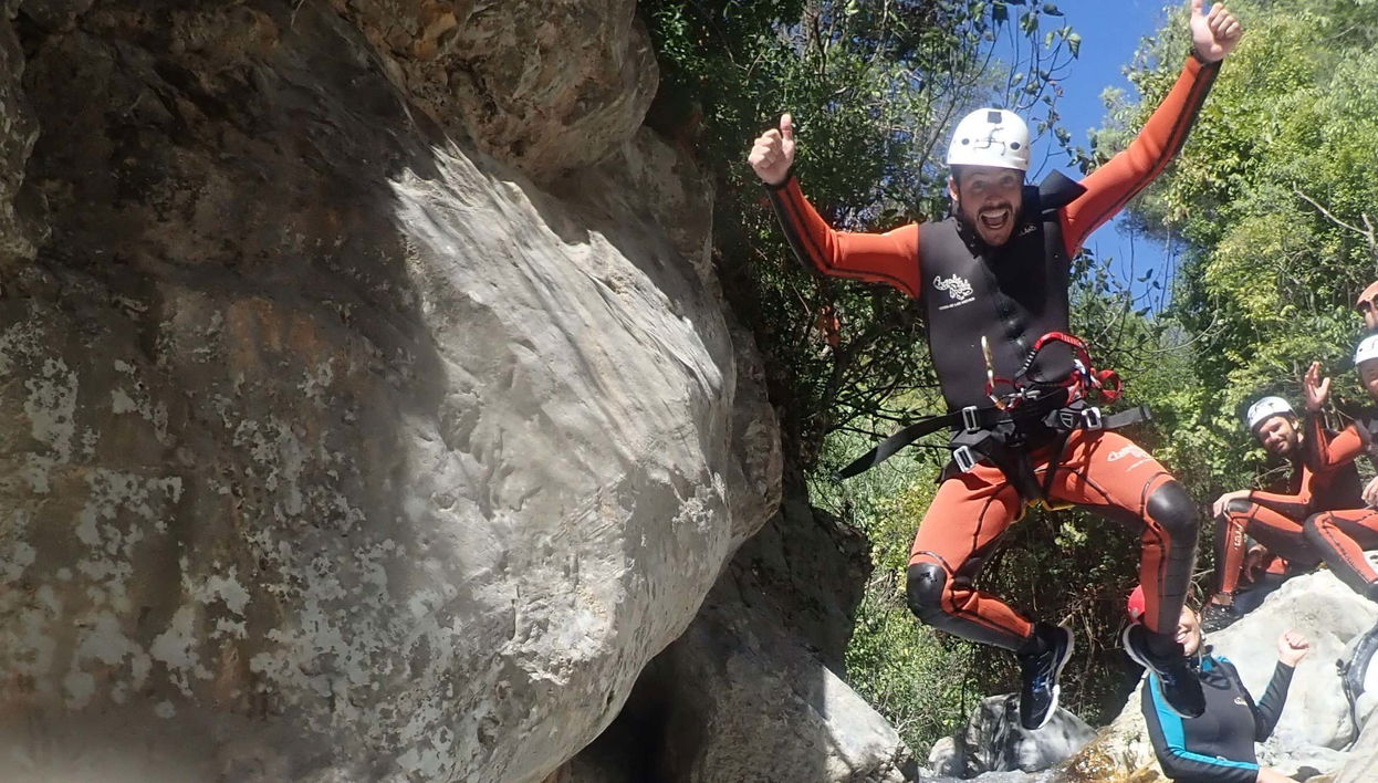 Durante la actividad de barranquismo en la Sierra de las Nieves, realizaremos nado, saltos, trepas, buceo y rápel. Esta será una auténtica aventura.